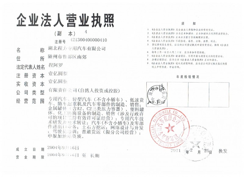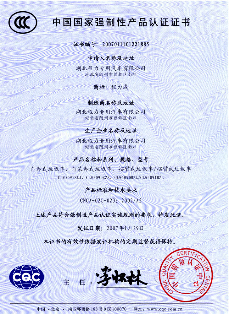 | 國家強制產品認證 | 湖北程力集團登記證 |