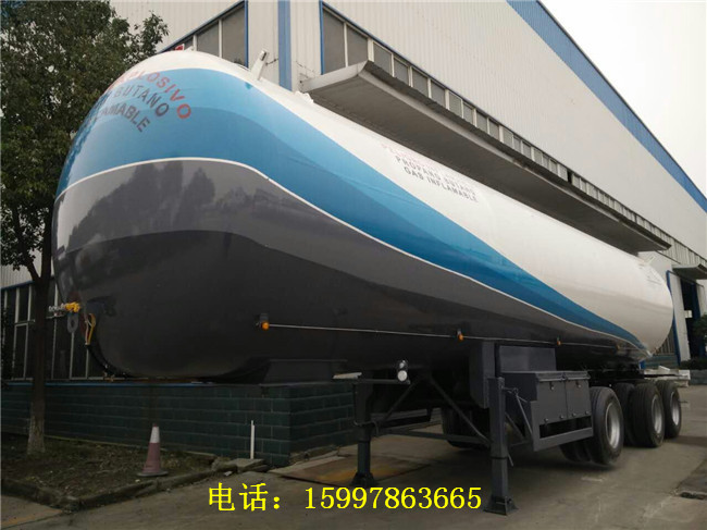 54立方液化氣半掛車可以裝載22.68噸氣體,因裝載量適中,成本可以有所減少,用戶經常定購這種規格的產品。