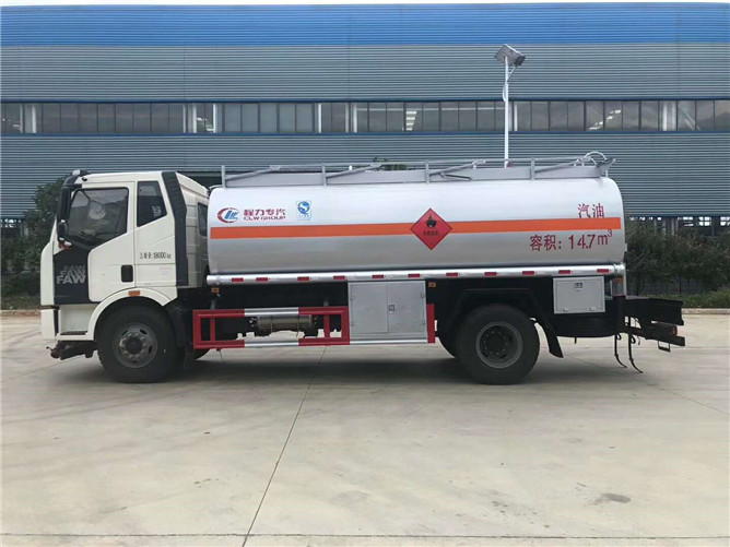 此款14.7立方解放加油車較受歡迎,且我公司擁有較多底盤資源,生產也很快速,需要的朋友歡迎來廠實地考察。