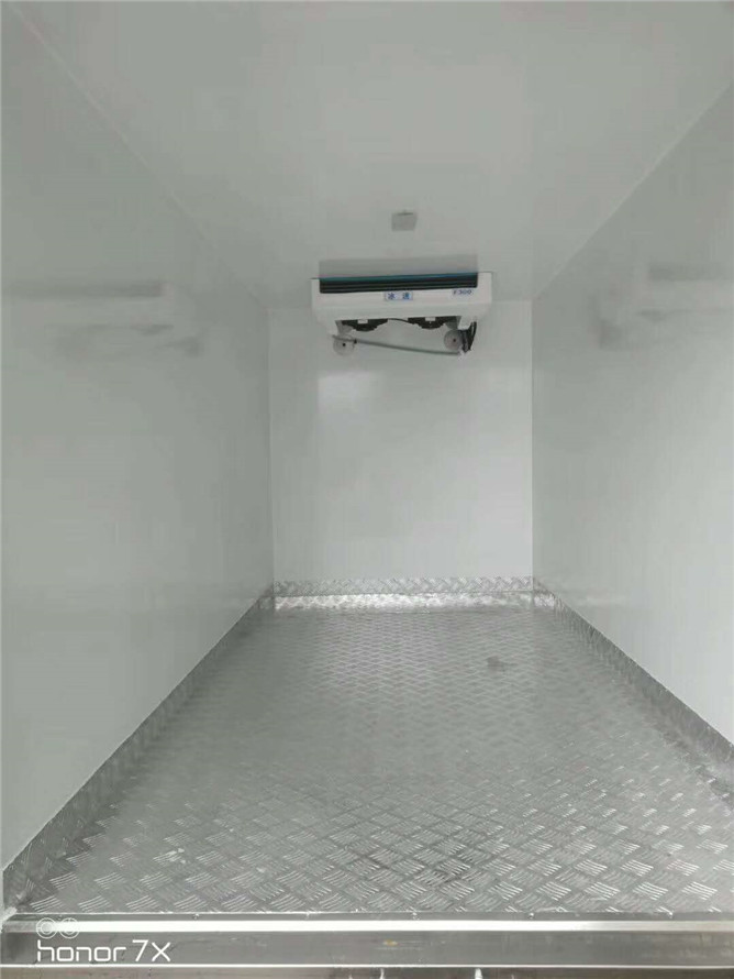 廂體參數(shù):廂體壁板采用2.2mm內(nèi)外玻璃鋼板材料制作,中間保溫層為80mm聚氨酯保溫板材料,箱體周圍采用鋁合金型材包邊,不銹鋼包角,門框及鎖飾件均為不銹鋼材質(zhì),安裝制冷機(jī)組最低溫度可以達(dá)到-18度(可調(diào)節(jié))