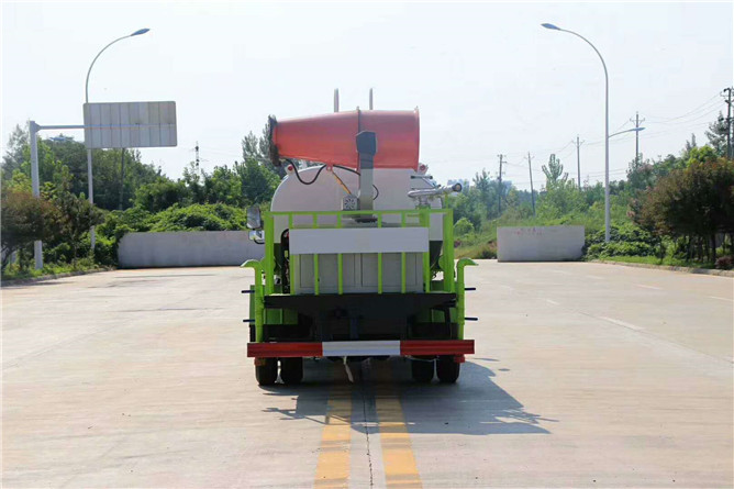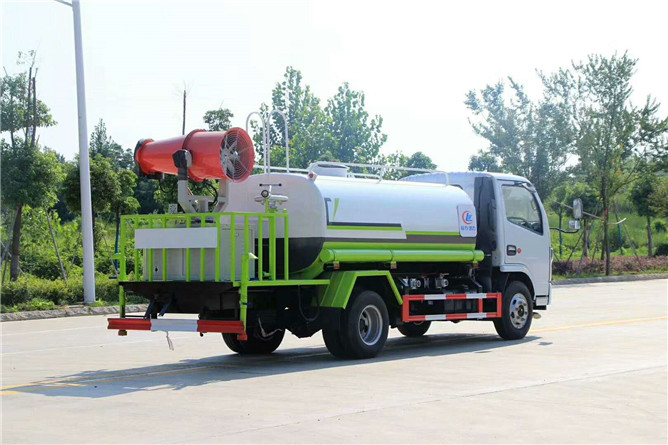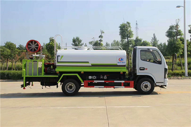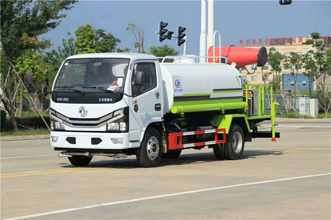5立方東風抑塵噴霧車,國六排放標準,罐體容積5方,配備30米噴霧炮,噴霧距離:30米,具備灑水車前沖,后灑,側噴,高炮功能。