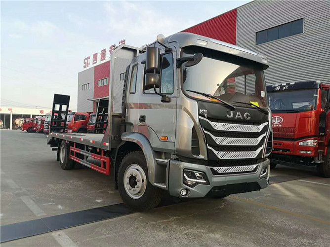 江淮單橋平板運輸車,K5半高頂駕駛室,云內四缸220馬力發動機,法士特8檔帶高低速變速箱,9噸后橋,245雙大梁。1000R20鋼絲胎,軸距有五米,總質量為18噸,原廠空調、氣囊座椅、電動門窗、電動翻轉,遙控鎖、氣囊座椅。行車記錄儀..整車型號為安徽興邦XBZ5180TPBH5平板運輸車公告!