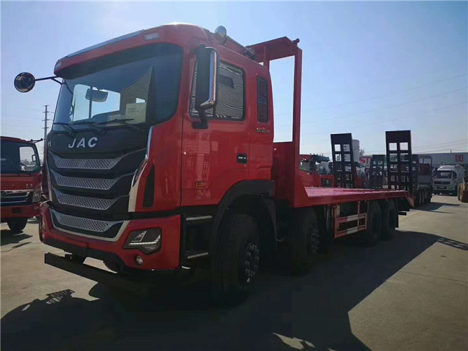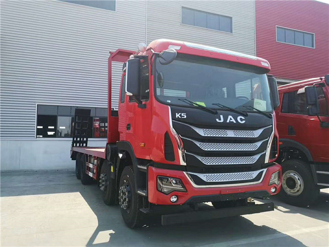 江淮前四后八平板車,K5半高頂駕駛室,濰柴350馬力,法士特12檔變速箱,300雙層大梁,1100鋼絲胎,空調,氣囊座椅,中控鎖,電動門窗。