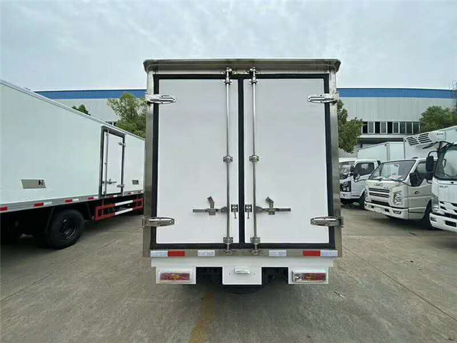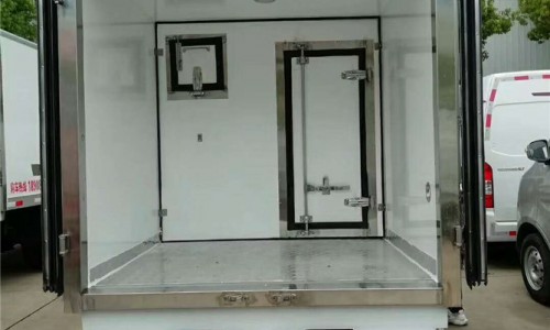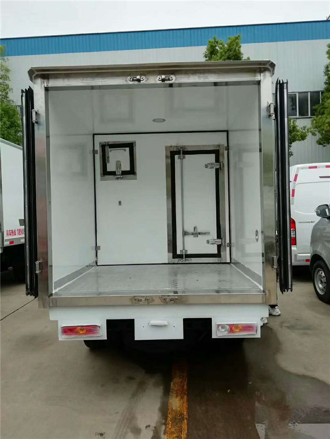 廂體采用內外玻璃鋼,八公分保溫板,后雙開門,后門不銹鋼包邊,不銹鋼鎖件,鋁花紋底板,側開門,隔板上加門,隔板左上部加窗戶。