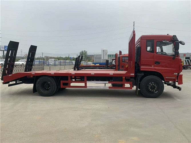 東風D17單橋平板車搭載濰柴165馬力發動機,陜齒八檔變速箱,前后橋3.6噸/9噸,280mm大梁,軸距4500/4700/5100,10.00R20鋼絲胎,原廠空調,中控鎖,自動調整臂,燈光調節,ABS.