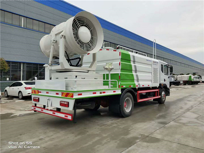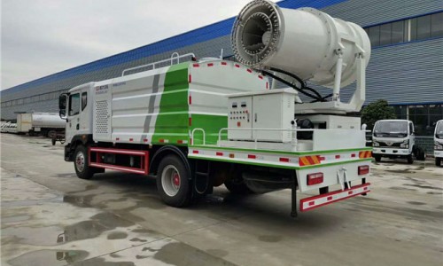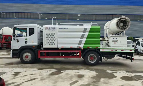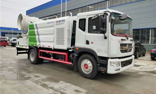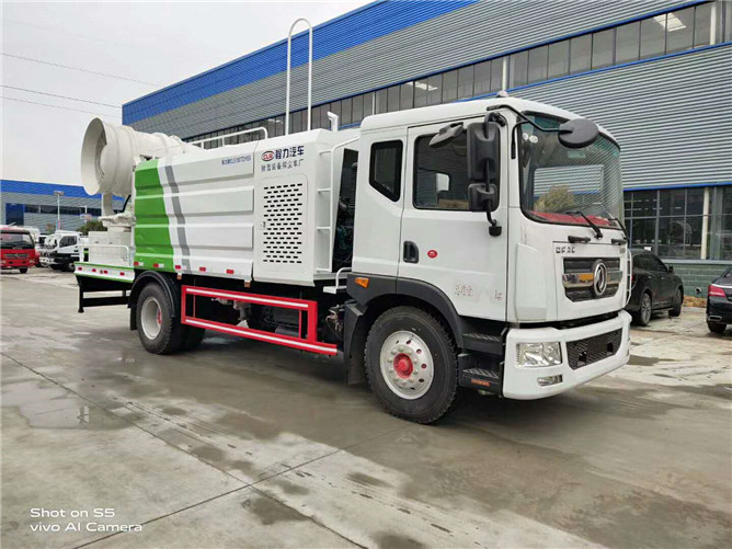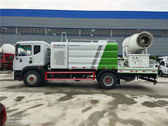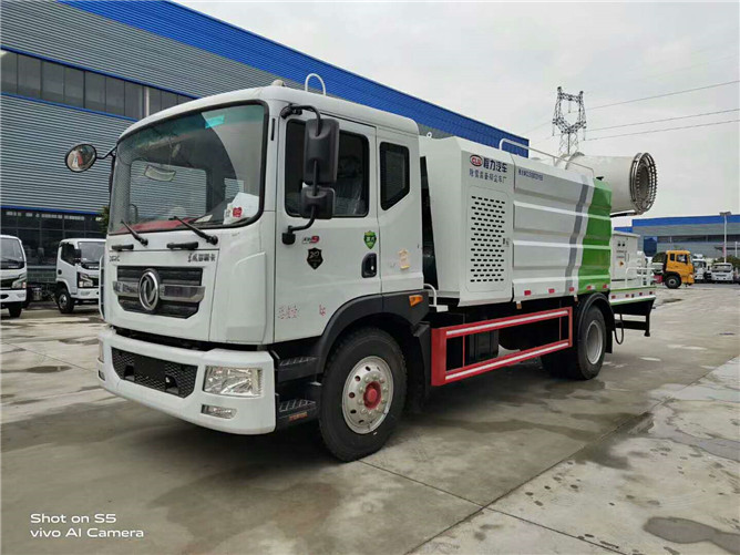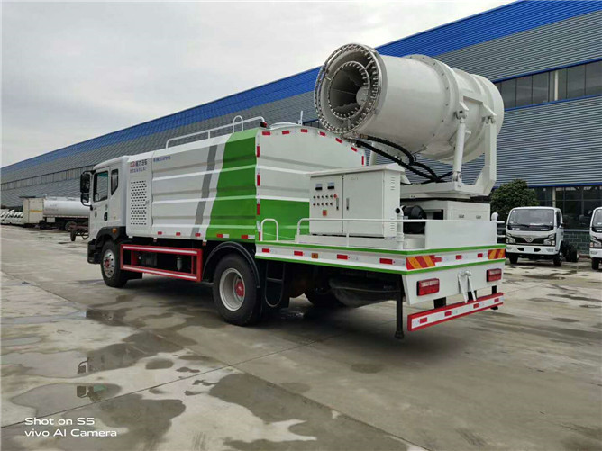 12立方多利卡D9抑塵車軸距4500、搭載玉柴200馬力發動機,10:00R20鋼絲胎,前沖后灑,(主管道兩個氣動球閥,駕駛室控制,手動保留)側噴,高炮,帶大工作平臺,罐體內環氧玻璃鱗片防腐處理,前置機艙百葉窗設計,經久耐用,平臺可選裝60到100米霧炮。