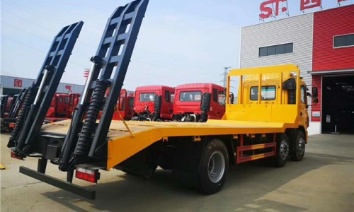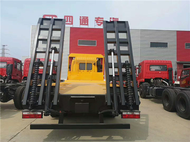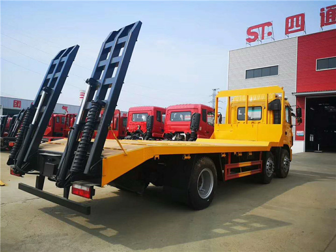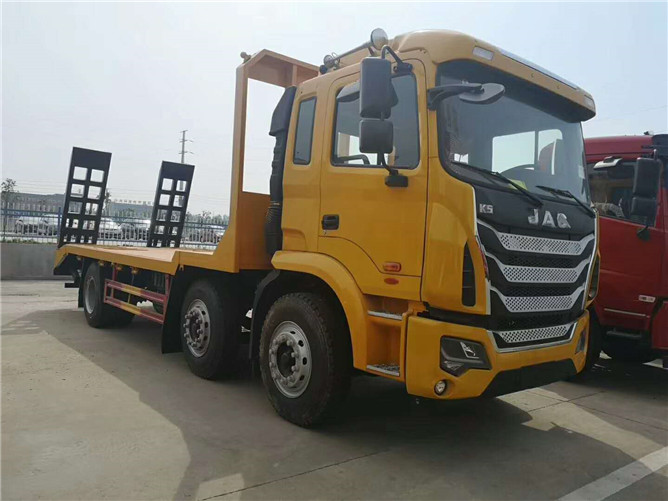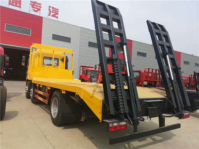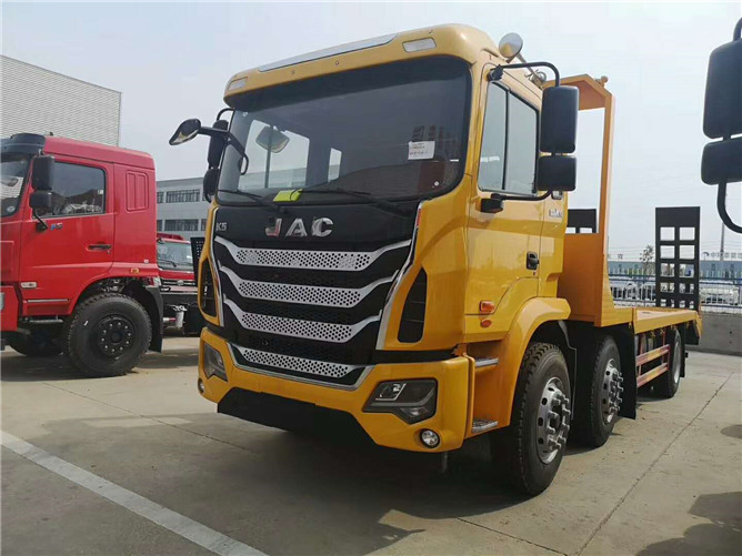 江淮小三軸挖機平板車搭載玉柴220馬力發動機,法士特8檔變速箱,兩邊液壓伸展,液壓爬梯。