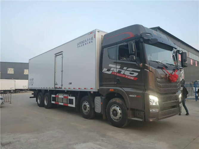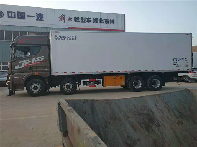 解放JH6冷藏車配置高頂駕駛室,搭載錫柴460馬力發動機,配冷王T800制冷機組,超高配置,性能相當優越。