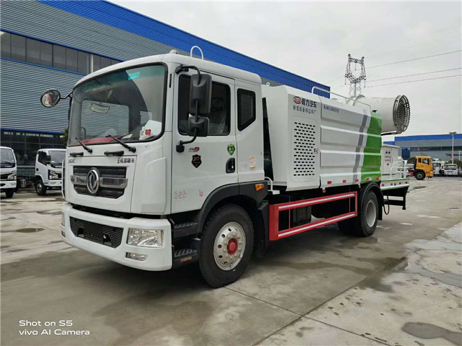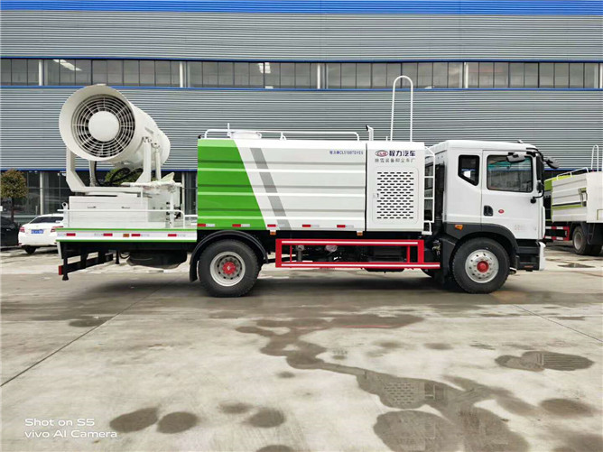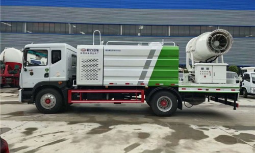 東風(fēng)D9抑塵車配備前沖、后灑、側(cè)噴(均采用6個(gè)T型球閥駕駛室自動操作控制)高炮、加大工作平臺,前置卷簾門消音發(fā)電機(jī)倉,中置加大容量方型水箱,罐體滿載容積10立方,是一款配置不錯的環(huán)衛(wèi)車。