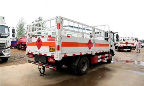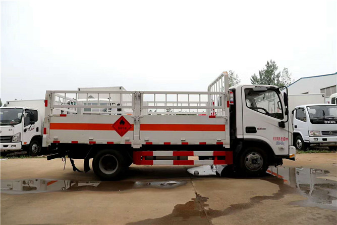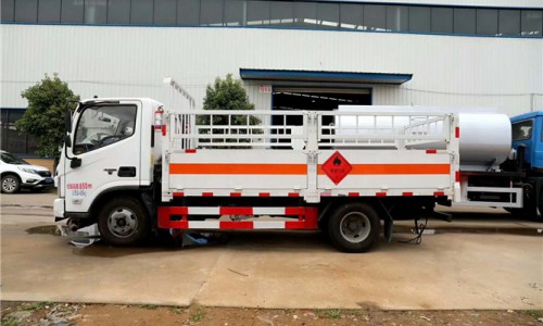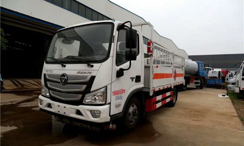 國六福田歐馬可倉欄氣瓶運輸車搭載康明斯131馬力發動機,7.00鋼絲胎,5檔變速箱,配置前盤限速ABS,排氣管前置,爆胎應急裝置,空調,方向助力,行車記錄儀,中控鎖,電動玻璃,遙控鑰匙。是一款藍牌氣瓶運輸車。