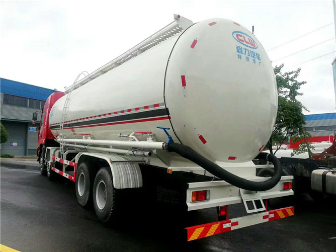 37立方上汽紅巖粉粒物料運輸車簡介:紅巖500駕駛室,車型8X4,科索390馬力發動機,法士特12檔變速箱,16噸雙級鑄造橋,12.00鋼絲胎,400L油箱。罐體4個厚,封頭5個厚,三倉三罐口,10方蕪湖福達空壓機。