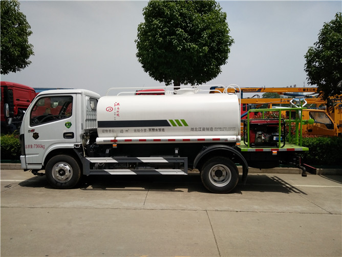 4立方東風灑水車,軸距3300mm,搭載四達102馬力發(fā)動機,5檔變速箱,1.8噸前橋,3.5噸后橋,7.00R16鋼絲輪胎,188mm等截面截面車架,單排1730駕駛室不帶空調(diào),有動力轉(zhuǎn)向,氣剎制動。