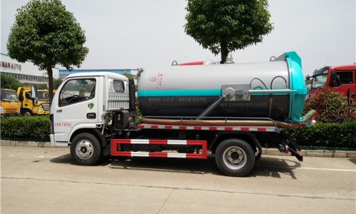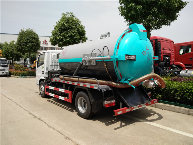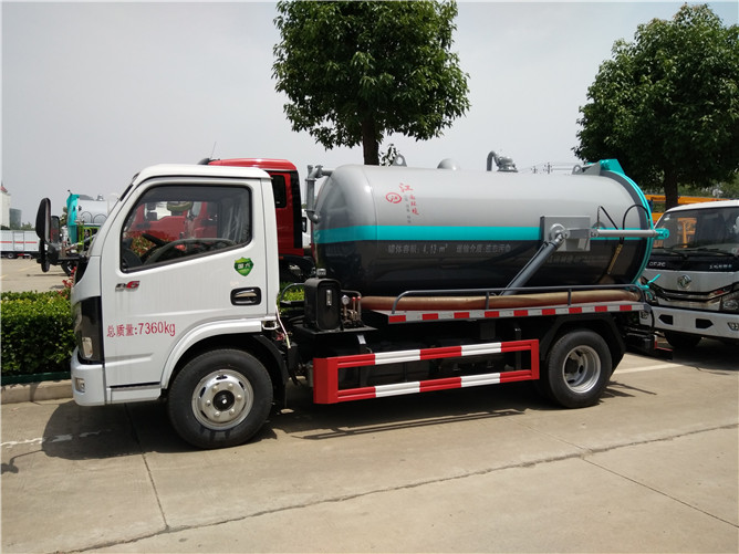 4立方東風吸污車罐體采用優質5-6mm厚碳鋼制作,配億豐真空油泵,水油分離器,防溢閥,洗手裝置,多路換向閥,真空壓力表,視污窗或視污管,罐體后部出口為DN100球閥,罐體可液壓舉升,后蓋可液壓打開,配6米長吸污管。