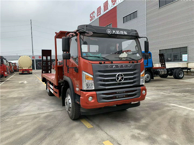 15噸大運挖機平板車搭配大運G6豪華排半駕駛室,玉柴160馬力國五發動機,陜齒小八檔變速箱(8JS85E)4100軸距,250(8+5)雙層大梁,前橋3.9T,10T加強型后橋,8.25R20鋼絲胎-6條,帶ABS,中控鎖,遙控鑰匙,電動門窗,鋁合金油箱。
