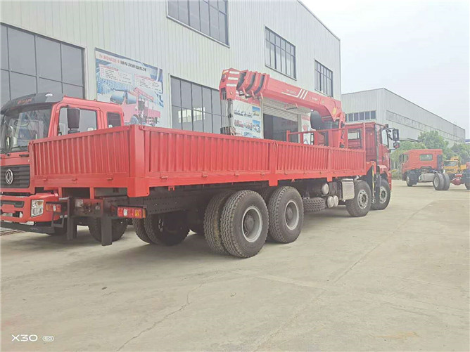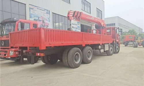 陜汽德龍前四后八隨車吊搭載濰柴350馬力發動機,法士特10檔變速箱,1200鋼絲胎,前橋7.5噸,后橋雙16噸,搭載三一帕爾菲格12噸4節臂吊機。國六排放標準,是新款豪華型隨車吊。