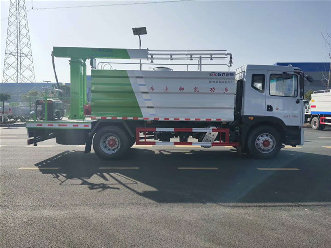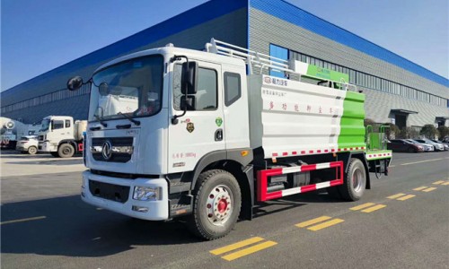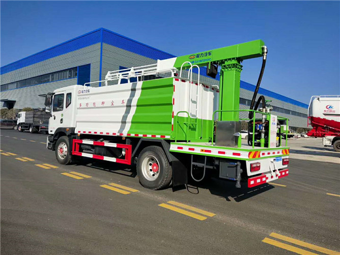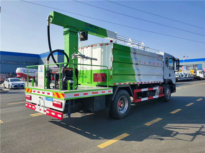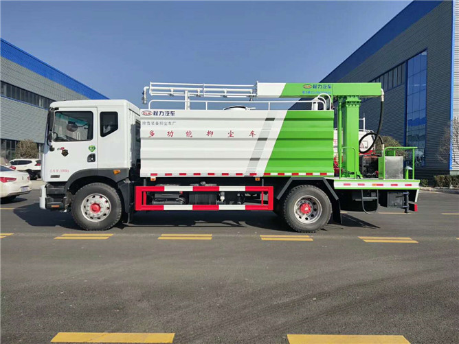 罐體為15方方圓形罐,前沖,后灑,側(cè)噴,高炮,抑塵噴灑桿(帶旋轉(zhuǎn)帶升降功能)。噴灑桿離地3.5-5.36米,后部平臺(tái)帶8KW副發(fā)電機(jī)組,可選電機(jī)泵,罐體內(nèi)部加壹個(gè)1.5KW電動(dòng)馬達(dá)(帶攪拌功能),罐體內(nèi)環(huán)氧玻璃鱗片防腐處理,質(zhì)保兩年,罐體噴漆上白下藍(lán),平臺(tái)和噴灑桿藍(lán)色,遙控操作噴灑桿上下升降、左右旋轉(zhuǎn),電控箱安裝在后部平臺(tái)。