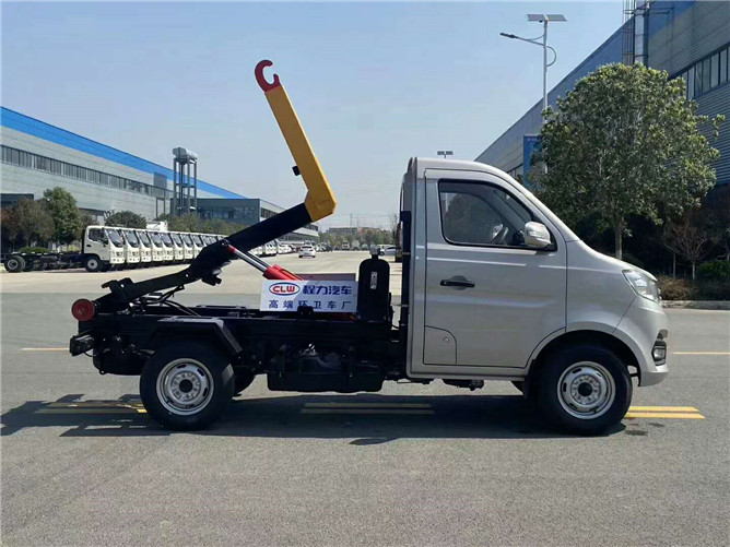 國六長安勾臂垃圾車搭載111馬力發動機,可配3方垃圾箱,大臂雙缸舉升,強度合金鋼一體式主勾臂,加強型副梁,鑄鋼尾托輪,電控室內外液壓操控裝置(可選裝手自一體),上裝最大提升能力1500KG,?液壓完成上箱+下箱+鎖緊+自卸等作業,實現一車配多箱的循環轉運。