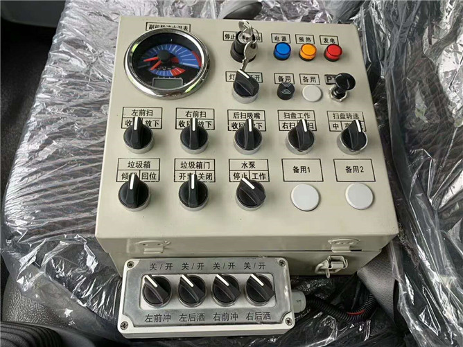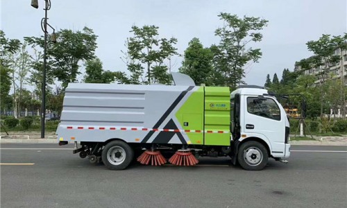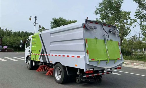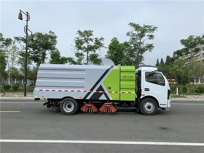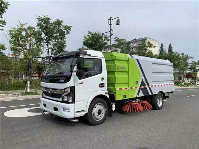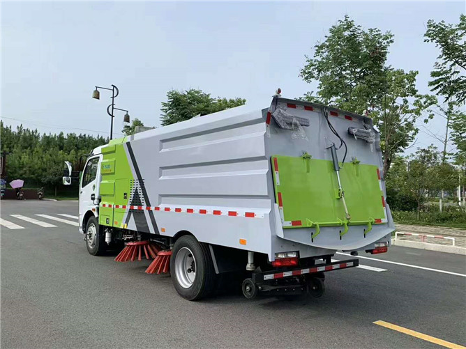 東風多利卡D7掃路車,2水/6塵,4個中置掃盤,帶3檔調速;江鈴87馬力增壓副發動機;大力馬達;施耐德控件開關;臺灣電磁閥組;免維護自分離式離合器;北玻臺信免維護風機;不銹鋼水箱;不銹鋼垃圾箱;尾部LED箭頭燈;手動泵應急系統;刷臂轉動機構使用高新耐磨工程隔套,免打黃油;精密冷彎無縫液壓油管。加裝氣動前沖后灑。