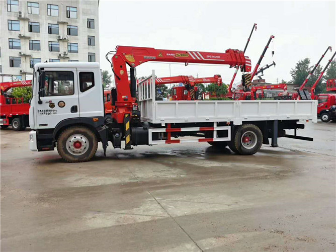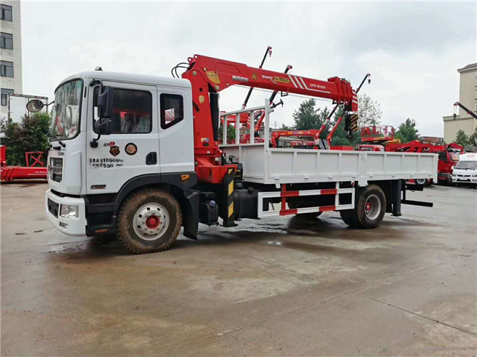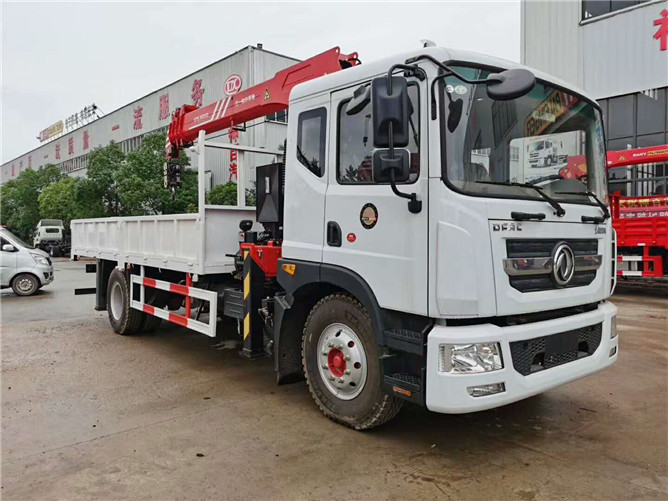 東風多利卡隨車吊,搭載康明斯180馬力發動機,8檔變速箱,貨箱長5.6米,上裝配三一7噸四節臂吊機。