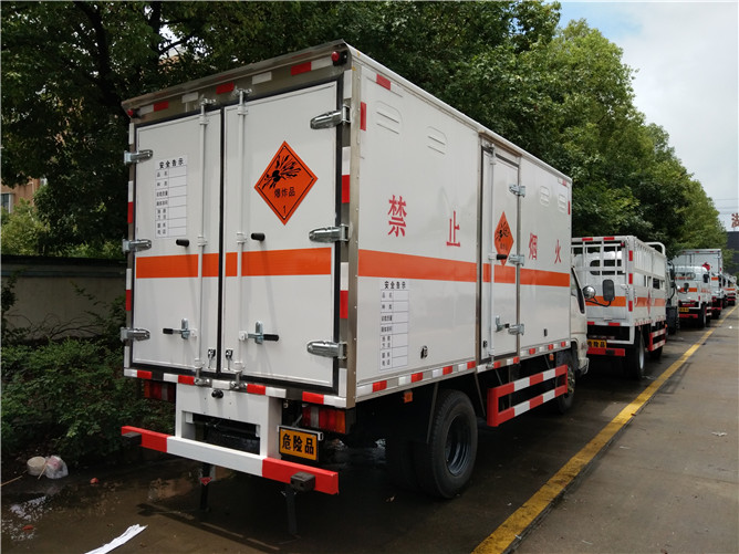 江鈴順達1類爆炸品運輸車是最新國六排放標準的危險品運輸車,主要運輸黑火藥,壓縮黑火藥,電引爆雷管,爆破炸藥,點燃導火索等。