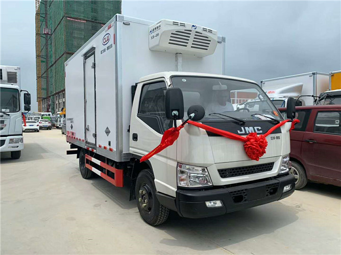 江鈴順達寬體冷藏車搭載江鈴五十鈴115馬力發動機,國六排放標準,整車尺寸5995*2020*3050,箱體尺寸4100*1800*1900,帶空調,助力,電動門窗,油剎,7.00輪胎,5檔變速箱,2.8L排量。