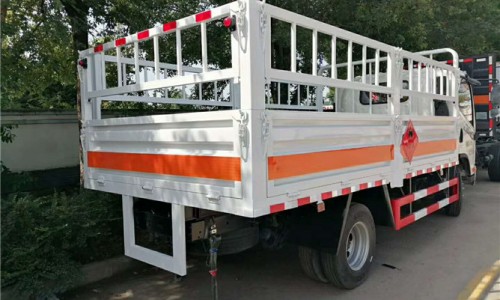 廂體尺寸:4100*2100*550(mm),廂體底部鋪防靜電膠皮,帶活動高欄,整車顏色白色。