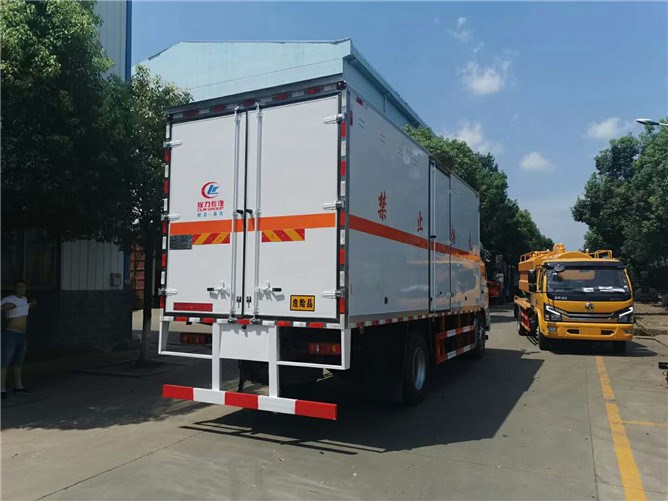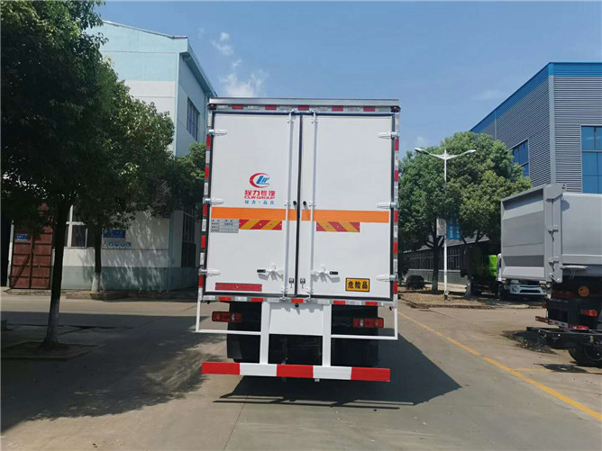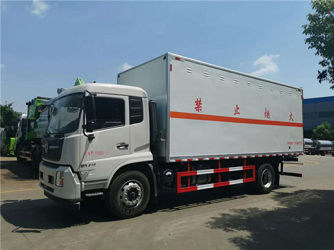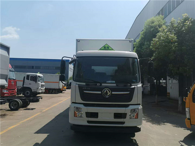 東風天錦易燃液體廂式車搭載康斯210馬力發動機,國六排放標準,軸距5000mm, 廂長6.6米,整車不超重,專業運輸易燃液體介質如:具有獨立容器(瓶)包裝的粘合劑,涂料,涂料溶液,煤油,苯,甲醇,乙醇,丙酮,甲苯,二甲苯,類項號:3。