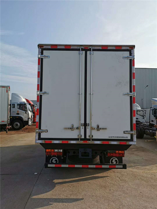 內(nèi)外優(yōu)質(zhì)玻璃鋼板,中間高密度保溫層,廂體厚度8CM,門鎖鉸鏈不銹鋼成型件,鋁合金型材包邊,地板鋁花紋板。