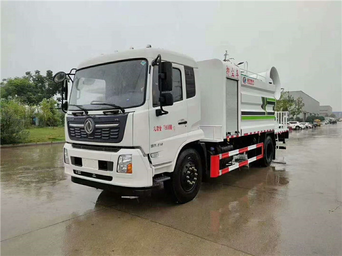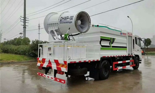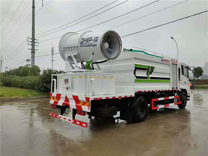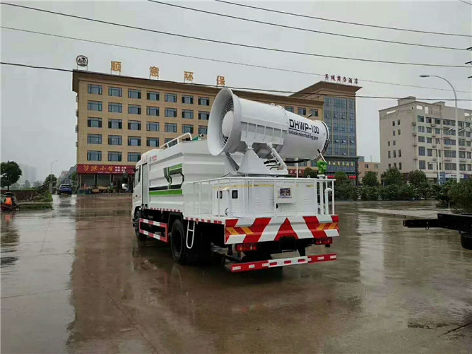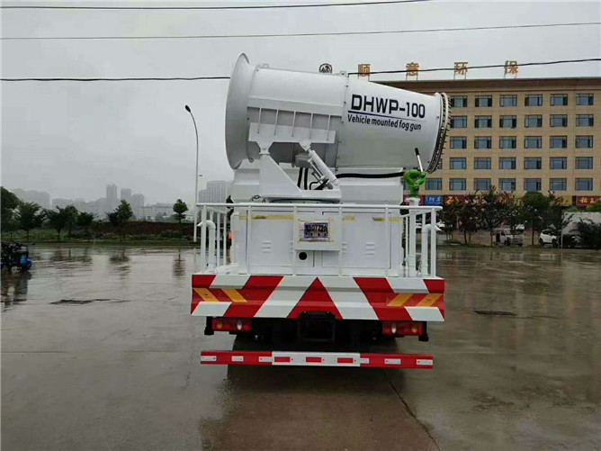 功能配置:帶前部沖洗路面噴灑裝置、后部扇形降塵噴灑裝置,兩側面噴灑裝置,帶后部工作平臺、平臺上80米霧炮車(實際水平靜風射程85米)帶消防接口、自流閥,可自吸自排。