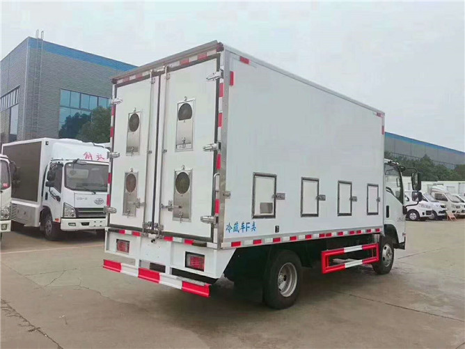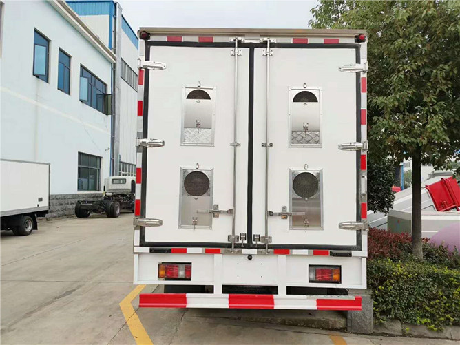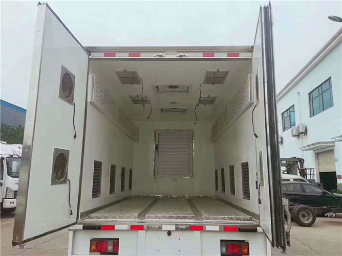 (2)廂板材質:內外壁板選用國內優質2.2mm玻璃鋼(不吸光、隔熱性好、硬度強、抗氧化);中間保溫層為XPS擠塑聚笨板;廂體厚度8CM。地板采用鋁花紋板,門邊條采用迷宮式橡膠密封條。