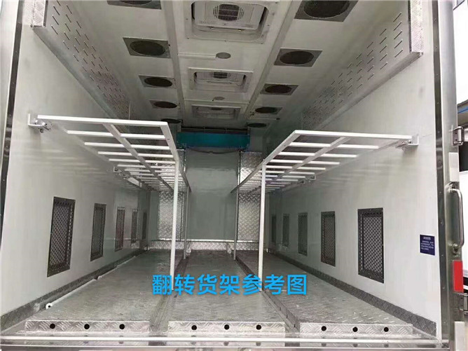 【翻轉貨架】廂體兩側手動翻轉堆貨貨架;