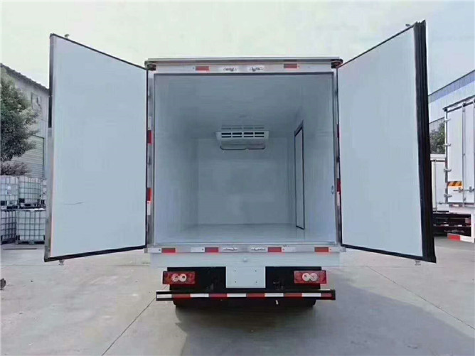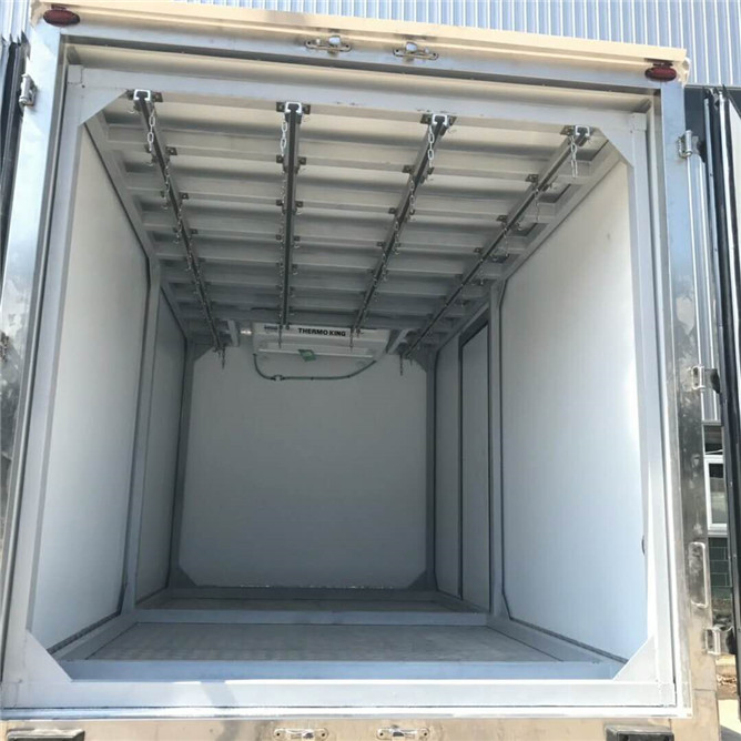 廂體特點:廂體采用內外玻璃鋼板夾聚氨酯保溫層制成,廂板厚度80mm,底板為鋁花紋板,鋁合金型材包邊,鎖件為不銹鋼。
