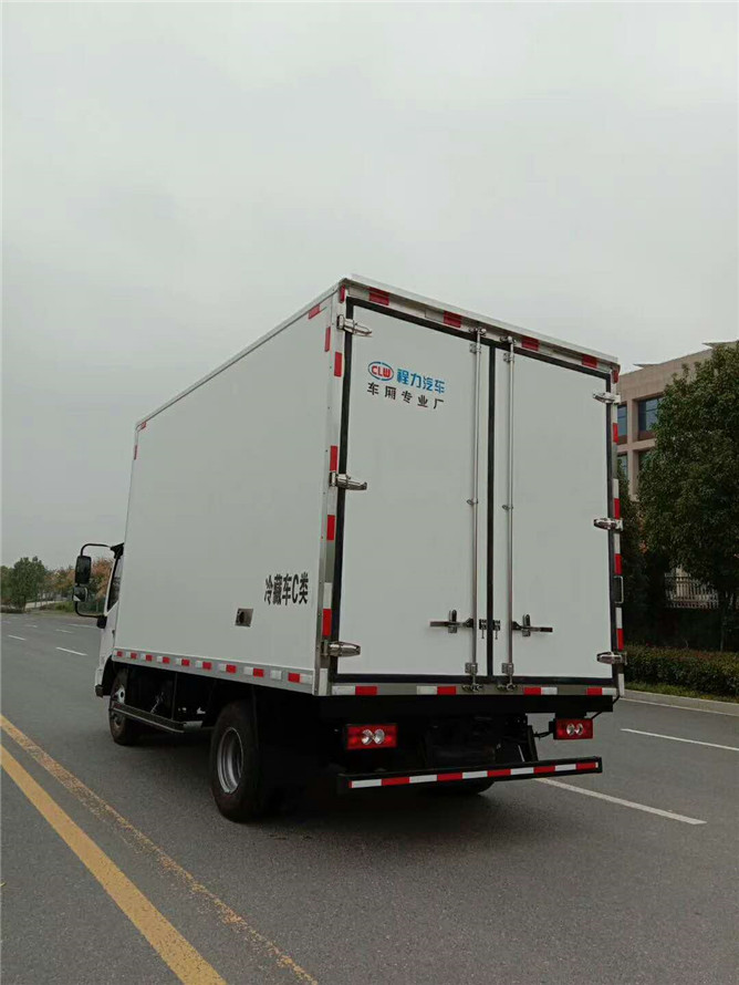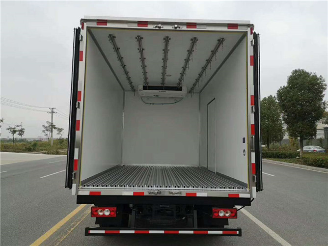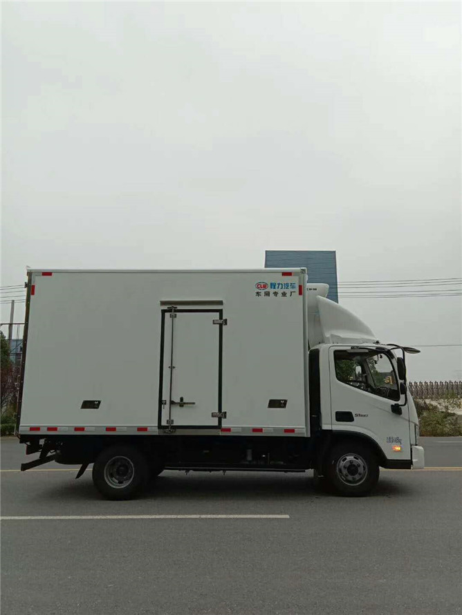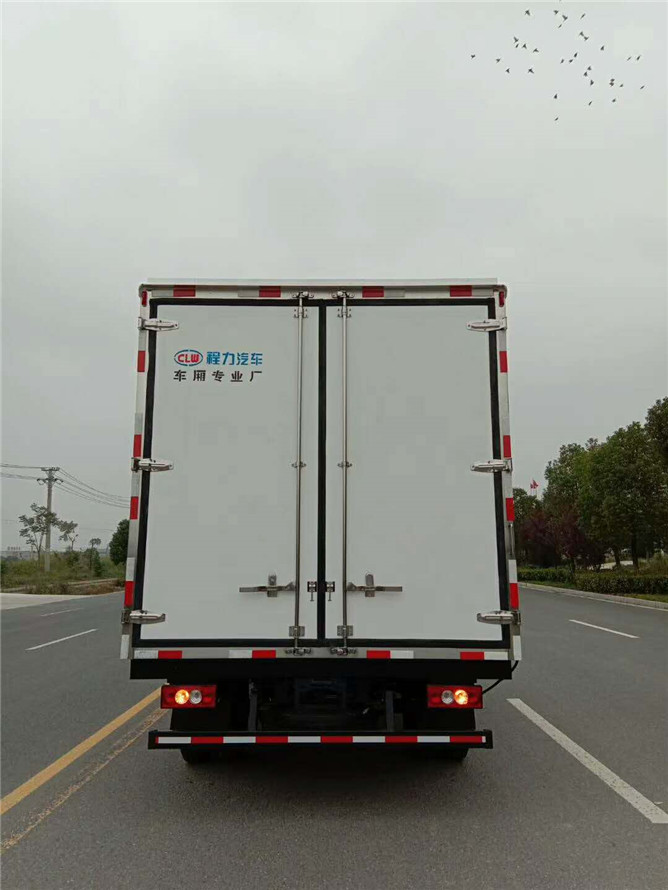 廂體配置:廂體內外為玻璃鋼板,中間保溫材料為200px聚氨酯保溫板,鋁花紋底板,箱體鋁合金型材包邊,包角,安裝側門,配雙開后門,不銹鋼門框、鎖件、鉸鏈。