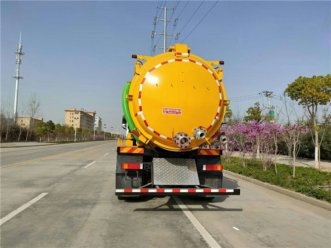 罐體厚度8毫米,罐體容積約20方,配180前置頂,帶旋流過濾器,斷軸取力器,配K30水循環泵。后蓋液壓開啟及鎖緊帶防誤操作系統。