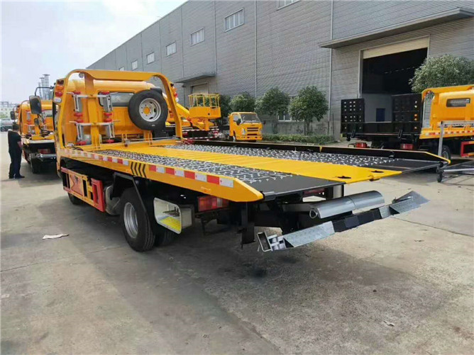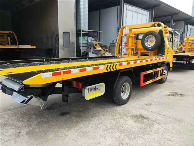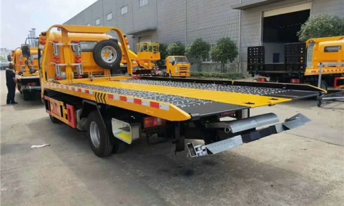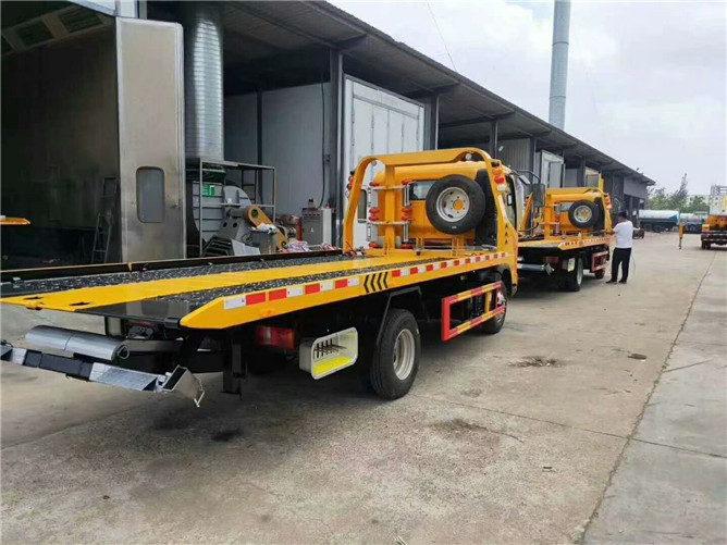上裝配置:3噸上裝,4噸絞盤,25米鋼絲繩,雙側聯動操作,沖壓一體板,輔助小車一套,四根捆綁帶。