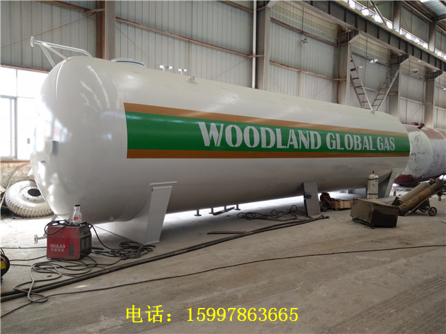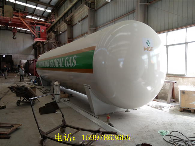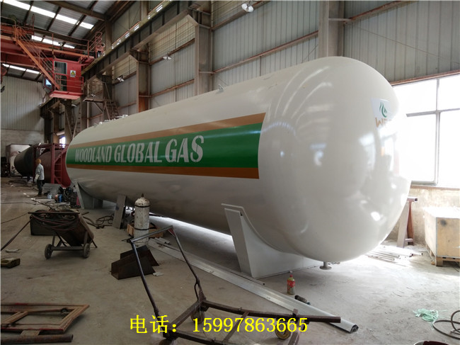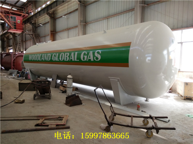 60立方液化石油氣儲罐設計壓力為1.77MPa,設計直徑為2700毫米,筒體厚度為14毫米,封頭為16毫米,設計使用壽命為20年,可以裝載24噸液化氣。