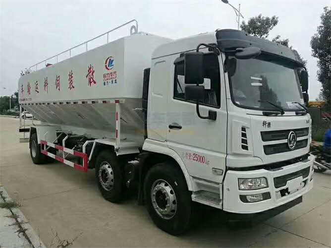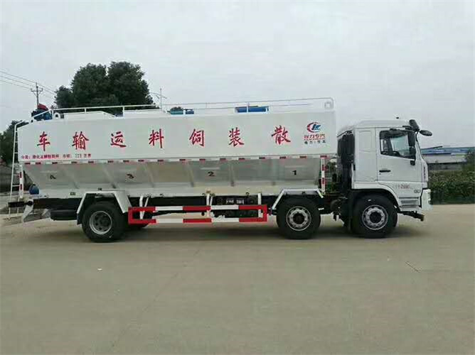 此款散裝飼料運輸車搭載濰柴220馬力發動機,軒德X6駕駛室,法士特8檔變速箱,1800+5000mm軸距,11.00R20鋼絲胎,電動門窗,中控鎖,空調,ABS,方向助力,氣囊座椅,整車尺寸:11050×2500×3980mm。