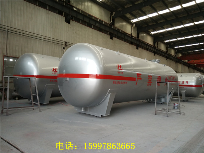 55立方液化氣儲(chǔ)罐設(shè)計(jì)壓力為1.77MPa,直徑為2700毫米,筒體厚度為14毫米,封頭為16毫米,裝載22噸液化石油氣。