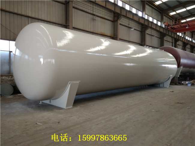 120立方液化石油氣儲罐設計壓力為1.77MPa,設計直徑為3400毫米,筒體厚度為18毫米,封頭為20毫米,設計使用壽命為20年,可以裝載48噸液化氣。