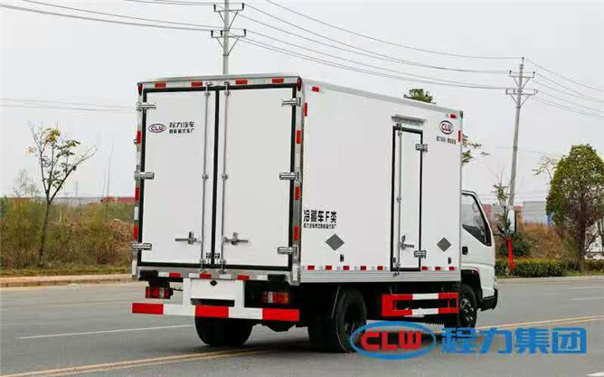 (2)廂板材質:內外壁板選用國內優質玻璃鋼(不吸光、隔熱性好、硬度強、抗氧化);中間保溫層為XPS擠塑聚笨板;廂體厚度8CM。地板采用鋁花紋板,門邊條采用迷宮式橡膠密封條。