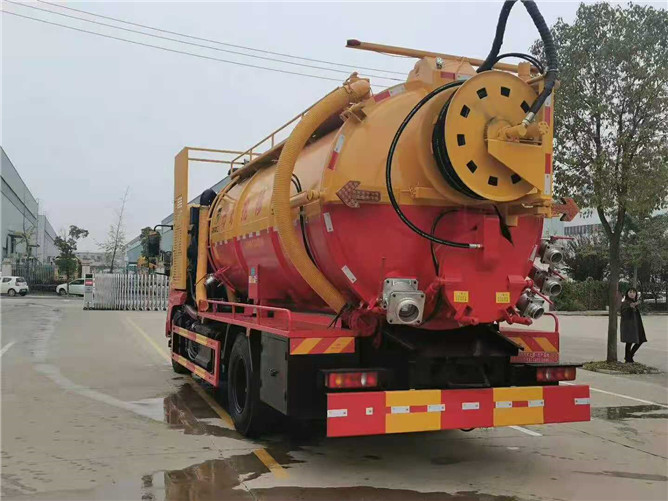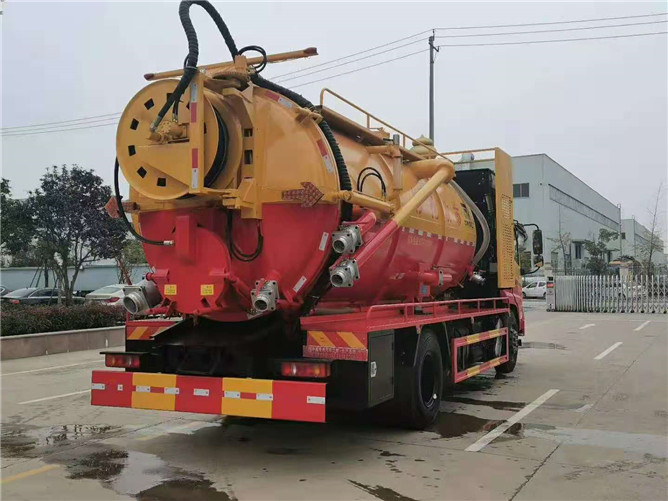 5、后封頭可旋轉(zhuǎn)齒輪自動(dòng)液壓絞盤,泵出水口到絞盤出水管用32通徑管路。高壓管100米用兩層鋼絲管,耐壓22mpa,排污口下部做污水圓形導(dǎo)流板,后封頭左下6寸排污閥一個(gè),后封頭右下1個(gè)4寸鋁合金吸污閥直通罐體頂部,罐體右上側(cè)4寸鋁合金上抽一個(gè),罐體右后側(cè)吸管上另加一個(gè)4寸鋁合金吸污閥(從罐體開口)。后尾部裝兩個(gè)小箭頭燈安裝在卷盤下面封頭兩側(cè)位置。一個(gè)工具箱兩層,上層中間做隔斷。4寸吸污管10米。配沖洗地面手柄槍一桿。水循環(huán)泵水箱為不銹鋼材質(zhì)。清水罐防銹處理