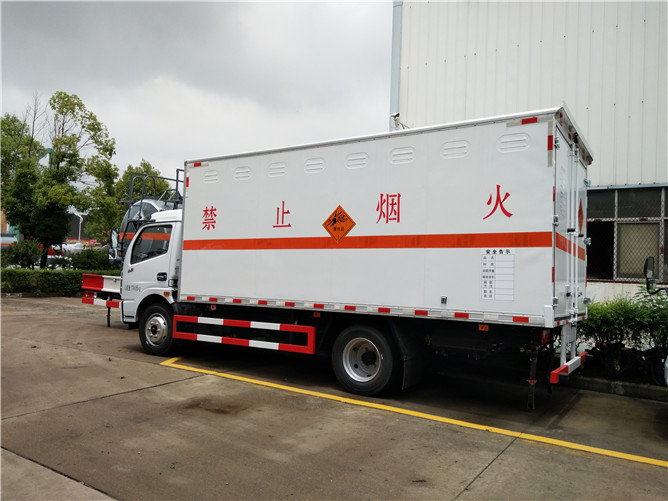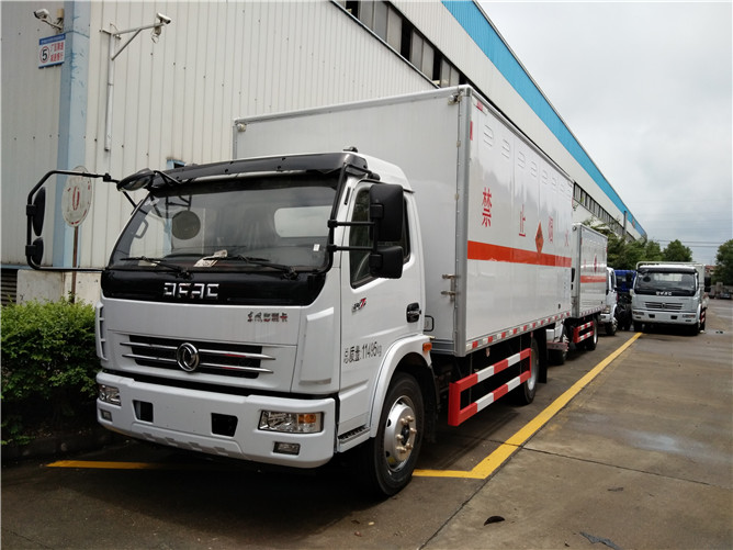 東風多利卡爆炸品廂式運輸車搭載朝陽朝柴156馬力發動機,軸距3800mm,帶空調,ABS,動轉,定速巡航,排氣管前置。專業運輸一類爆炸品:雷管、炸藥、火藥
