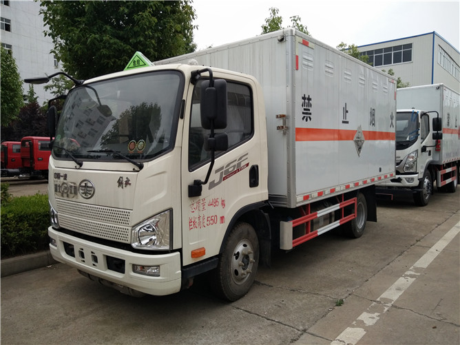 解放J6腐蝕性物品運輸車搭載濰柴130馬力發動機,上戶0.75噸,廂長4.2米,是款比較暢銷的危險品廂式車。