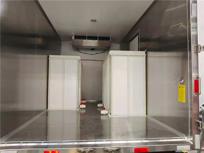 廂體配置:廂體內(nèi)外為玻璃鋼板,底側(cè)兩面為304不銹鋼材質(zhì),中間保溫材料為200px聚氨酯保溫板,箱體采用鋁合金型材包邊,包角,配雙開后門,不銹鋼門框、鎖件、鉸鏈,其余標(biāo)配。加裝鮮活魚箱及杜瓦罐。