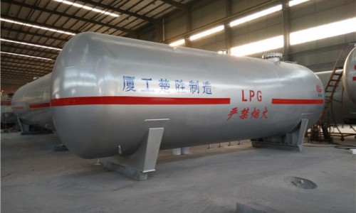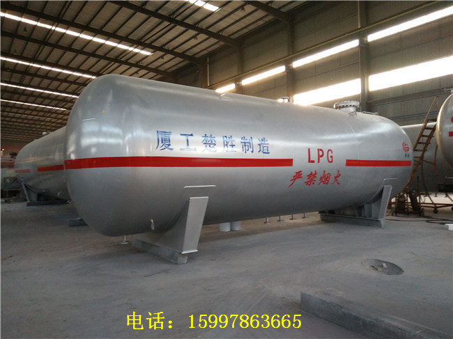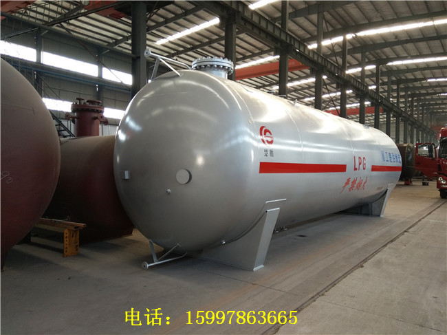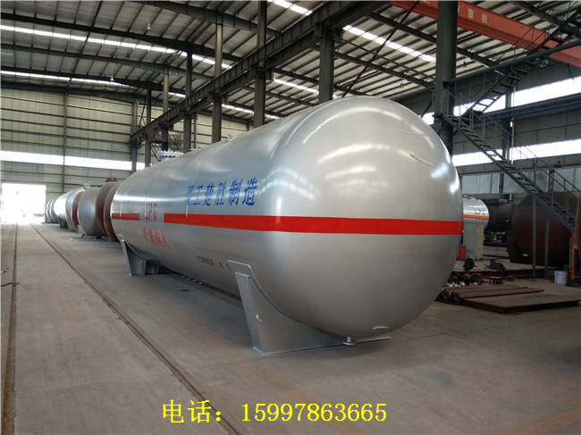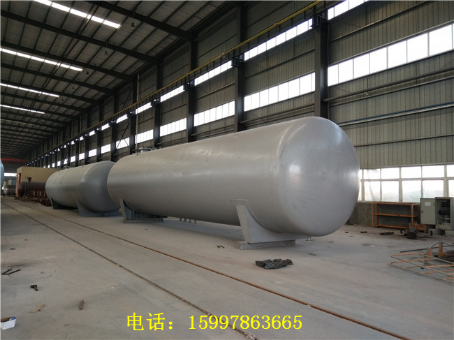 63立方液化氣貯存罐在一些中型液化氣充裝站內經常用到,它的設計壓力為1.77MPa,直徑2700mm,總長度11.5米,滿載可裝載25噸LPG介質。