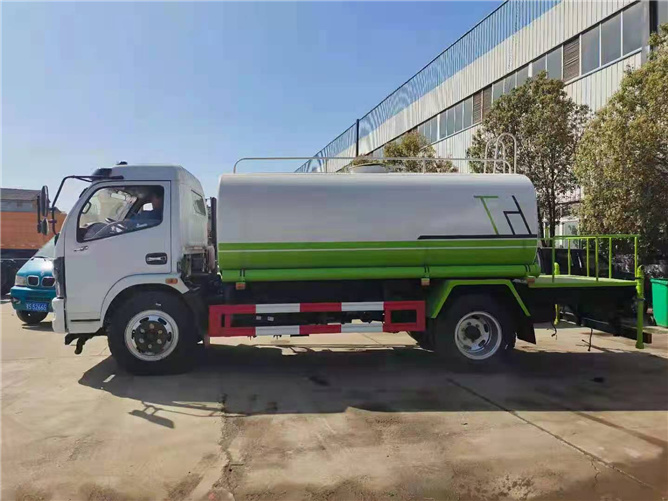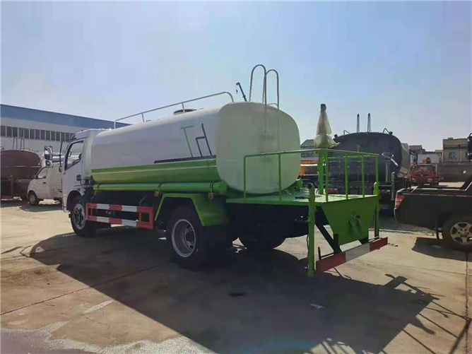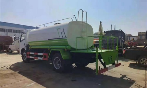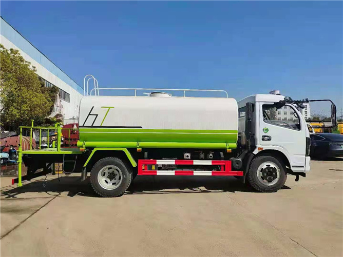 罐體配置;罐體采用碳鋼制作,材質為Q235,厚度4mm。配有前沖,后灑,側噴,大功率灑水車40/50專用泵,整車帶后工作平臺,平臺上安裝綠化灑水高炮,配備大功率灑水泵,帶有消防接頭,能夠自吸自排。