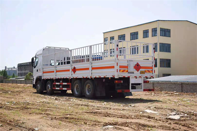 廂體內有固定貨物的臥環,車輛外部有靜電帶、滅火器、防火罩,車廂內安裝煙霧報警器和門防盜報警器,嚴格按照國家危險品相關法規張貼。