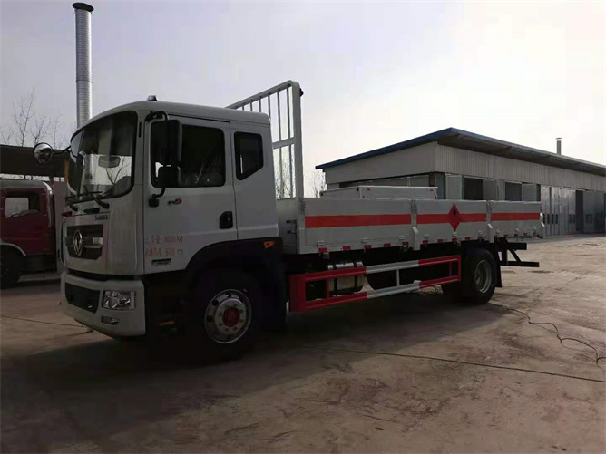 東風多利卡D9氣瓶運輸車搭載康明斯220馬力發動機,法士特八檔變速箱,軸距為5.6米,廂體長7.65米,是款性價比不錯的黃牌危險品運輸車。