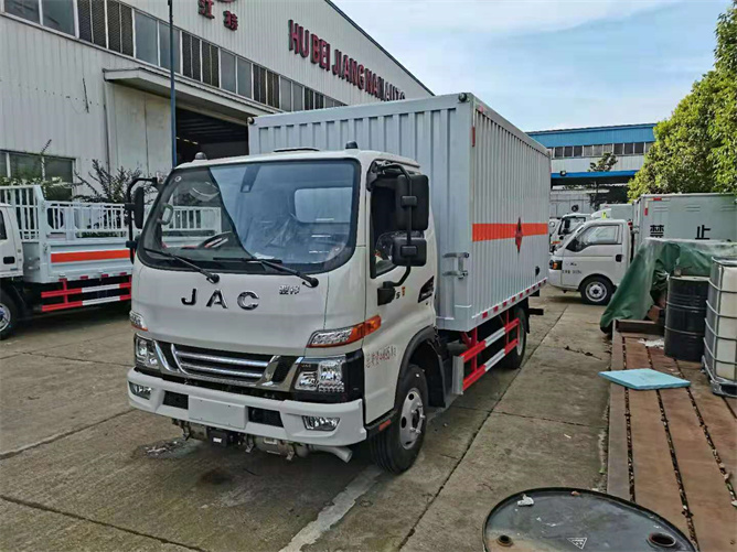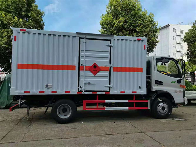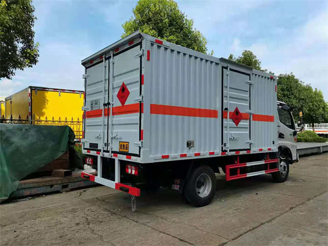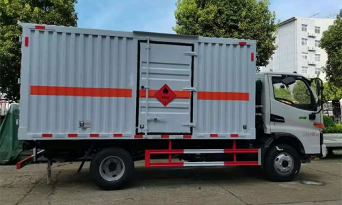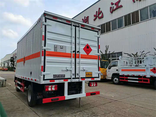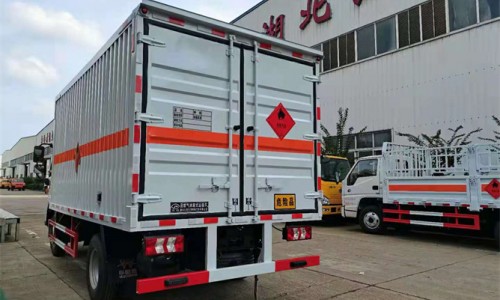 廂體為單層瓦楞板結(jié)構(gòu),廂體右側(cè)中開(kāi)單側(cè)門(mén),底板為花紋板,上鋪防靜電膠皮,廂內(nèi)兩側(cè)加裝固定貨物卡槽,門(mén)框帶防盜報(bào)警器,頂部帶煙霧報(bào)警器。配備隨車工具,滅火器,三角頂燈,防靜電拖帶,貼反光標(biāo)識(shí)等。