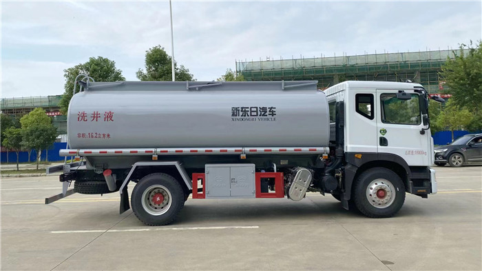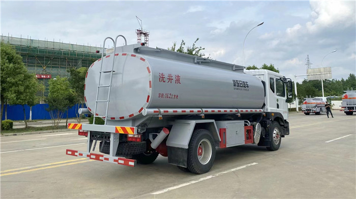 罐體配置:容積:16.2方,運輸介質:普通液體,罐體標配為單倉帶泵,罐體頂部一個國標普通罐口,隨車側面一個操作箱,內置兩個自流閥口,尾部兩側帶滅火器,兩根與罐體等長的輸液管。油漆:銀灰,貼反光標志。罐體材料Q235碳鋼,罐體一次性卷壓成型,方圓形罐體,漲型封頭,罐體內部安裝防浪板,全自動無縫焊接,100%通過液體滲透、氣壓檢測。可選裝歐標罐口,罐體底部海底閥裝置。